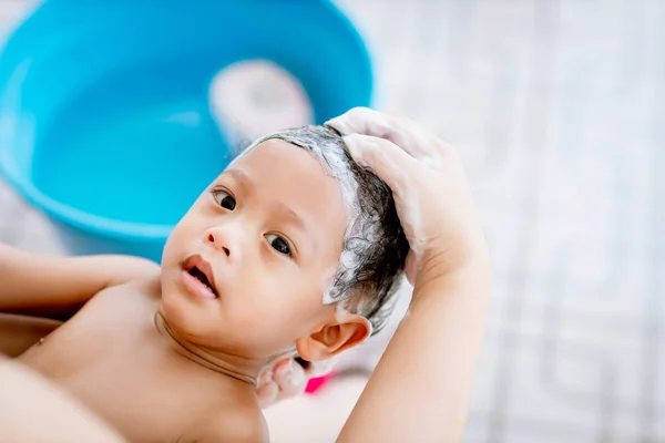 Special care is needed until the. Use a little baby soap on a washcloth to wash the baby's hands and feet. Slowly place your baby in the bath, feet first, while supporting their head and neck above the water. Lay your baby down and dry their head gently, and lift the hood of the towel over their head to keep their warm. Making sure to support baby's head at all times, gently lower your little one into the water.